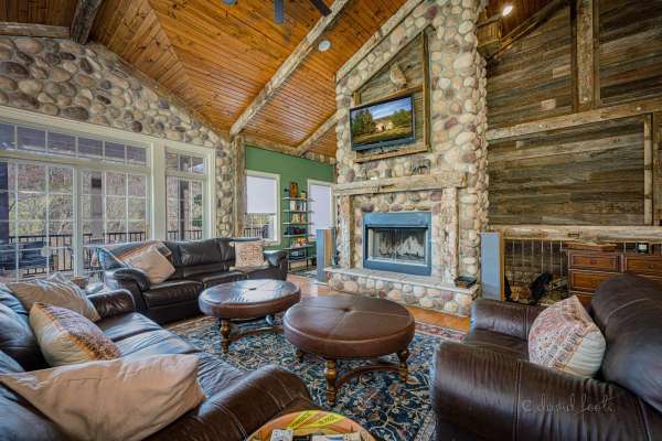 Owl Creek Lodge is a spacious retreat set on over four wooded acres. Featuring a striking river rock fireplace, gourmet kitchen, hot tub, and fire pit,…