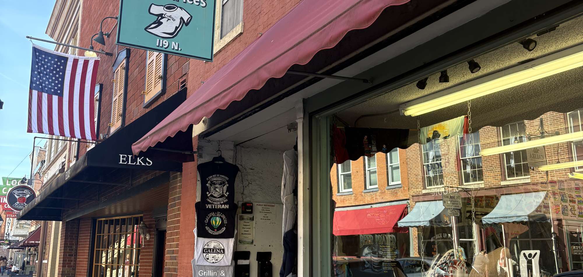 Galena Tees is a lively Main Street shop offering humorous, locally inspired t-shirts and custom designs that make fun souvenirs and gifts from Galena Country.